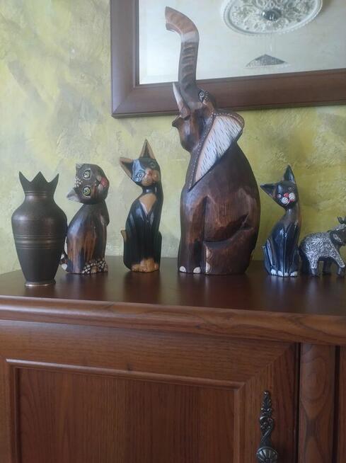 witam mam do sprzedania trzy figurki z kotem jedna słoń drewniane drugi słoń z kamionkowy oraz dzbanek z mosiądzu zmiana ...