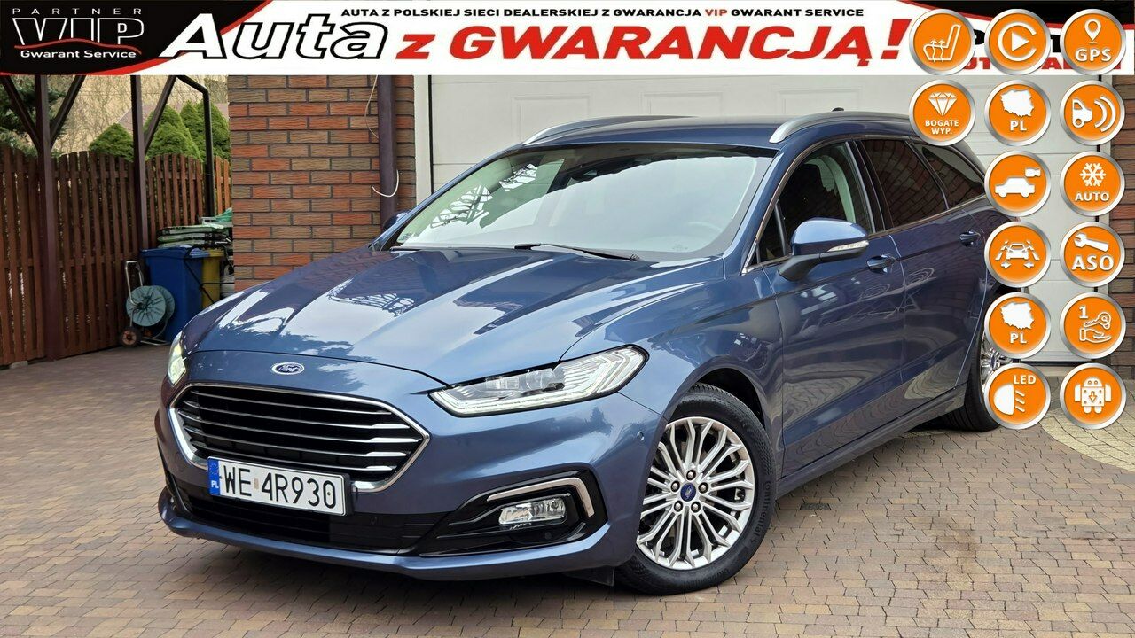 POLECAMY-FORD MONDEO 2.0 Ecoblue 150 KM 2021 . z 6-biegową skrzynią biegów kupiony w polskim salonie, serwisowany , w bogatej wersji wyposażenia- TITANIUM- NAWIGACJA, KAMERA COFANIA, LAMPY FORD DYNAMIC LED , ASYSTENT PARKOWANIA- SAM PARKUJE , PODGRZEWANE FOTELE+KIEROWNICA